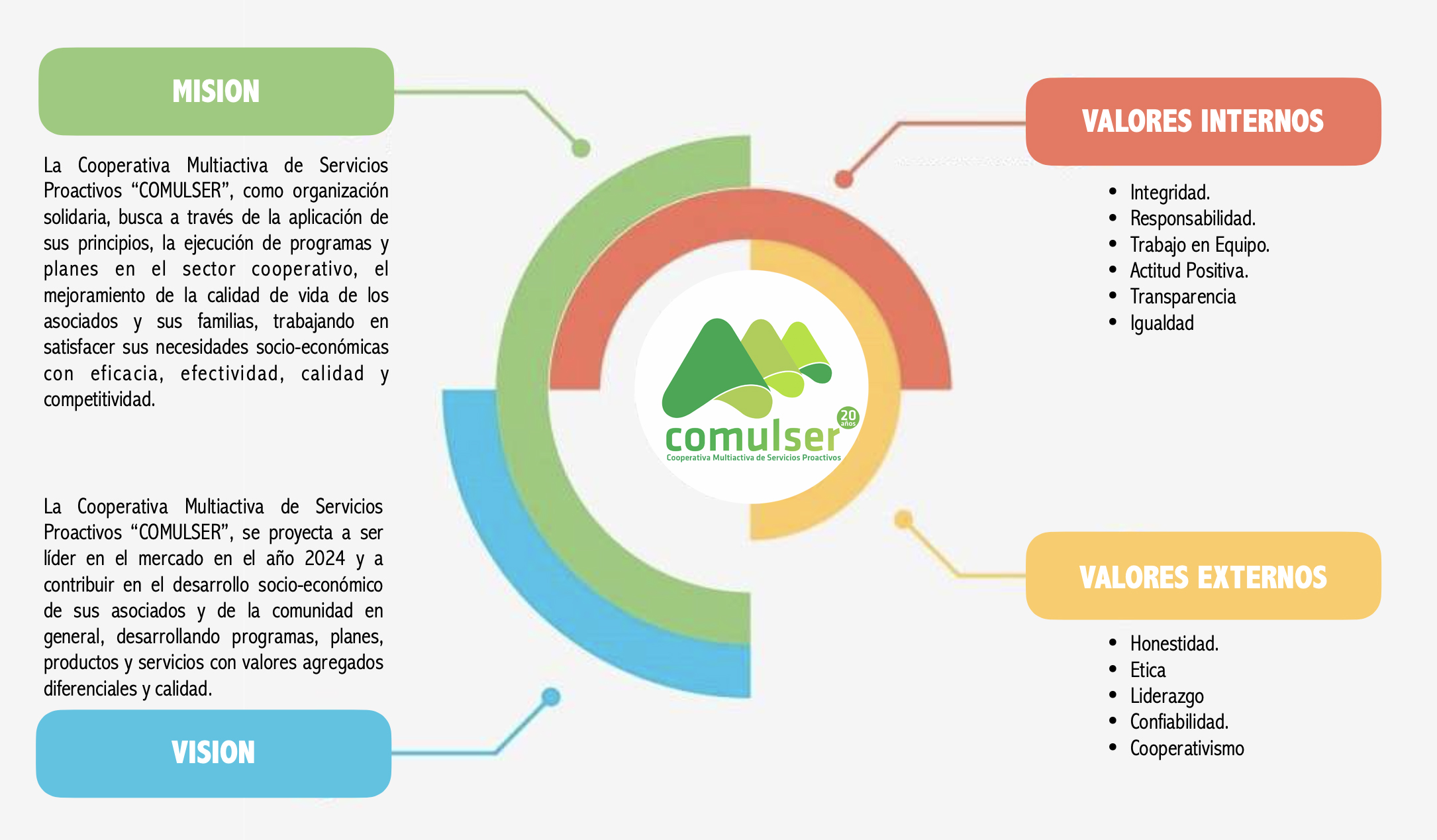 COMULSER «una organización solidaria, ejecuta programas en el sector cooperativo, mejorando la calidad de vida de sus asociados».